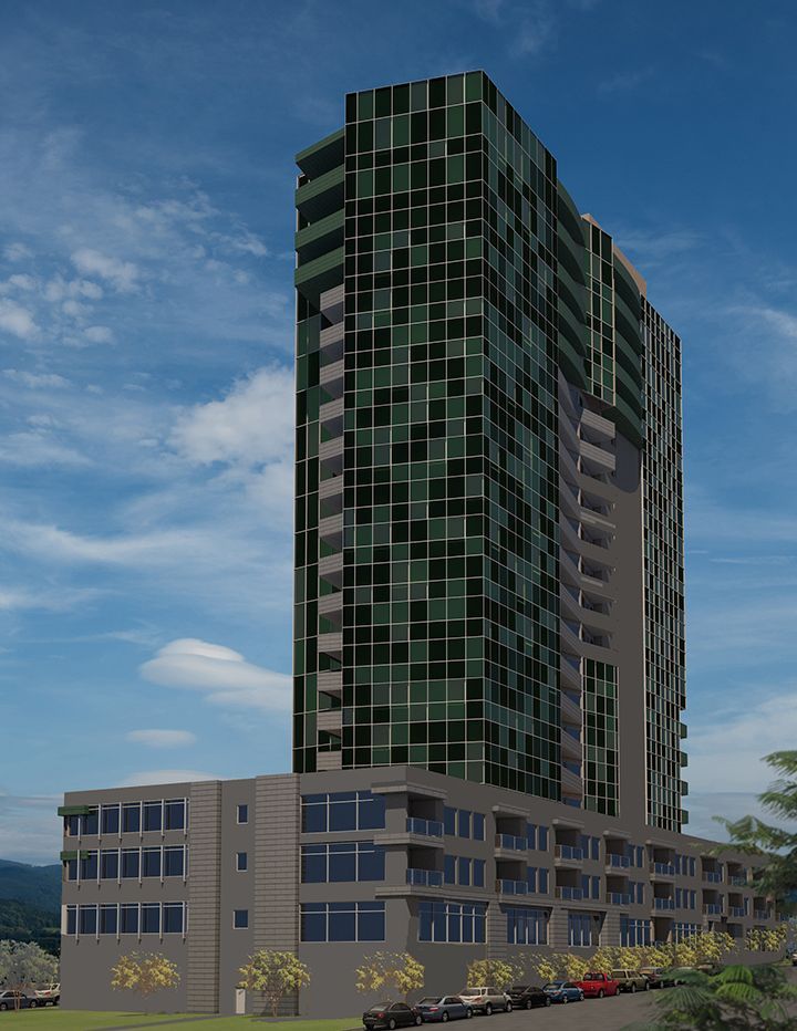 Principal Architect Randal Ehm is developing this project in downtown Bellevue, just east of Seattle. This 128-unit luxury condominium tower is oriented to ensure view preservation in anticipation of future development in the Downtown Core. The units offer sweeping views of Lake Washington and downtown Seattle to the West, Mt. Baker to the north, the Cascade Mountains to the east and Mt. Rainier to the south. With a ground-floor upscale restaurant and multi-colored glass the structure will become a prominent feature on the Bellevue skyline from northbound Interstate 405.