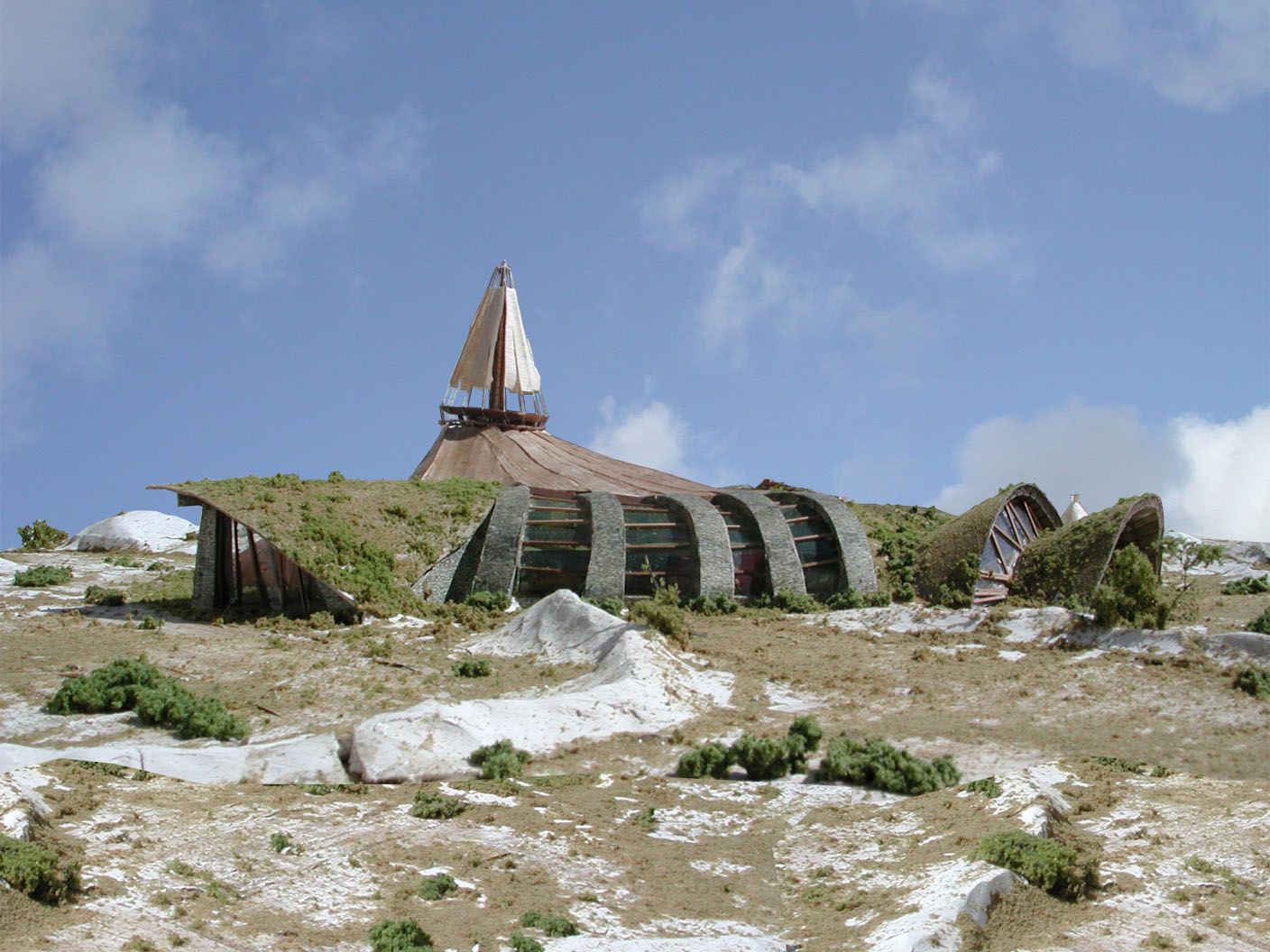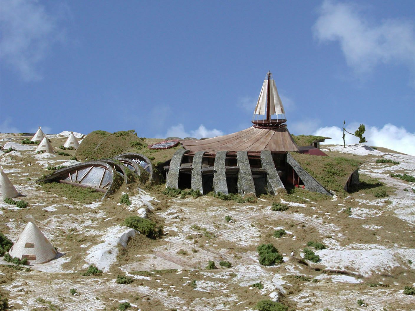 This 108,000 square foot facility was designed to incorporate sustainable technologies and green building systems, utilizing rammed earth construction, greywater systems, solar heating and natural ventilation. The structure also has very strong cultural significance, which was inspired by the buffalo as a sacred being to the Lakota Sioux people. The Needs Assessment process involved Tribal elders, teachers, community leaders and parents. Project components include administrative offices, food service and commercial kitchen facilities with culinary arts facilities, an equestrian arts facility, vocational classrooms with wood and metal shops, an environmental design academy focused on recycling of found objects, geothermal heating, wind energy as well as solar energy and earth-integrated technologies, a tropical greenhouse in a natural setting for cultivation of edibles along with tilapia farming, math and science classrooms, athletic facilities with swimming pool and gymnasium, performing arts facilities, and art gallery for student work a library.