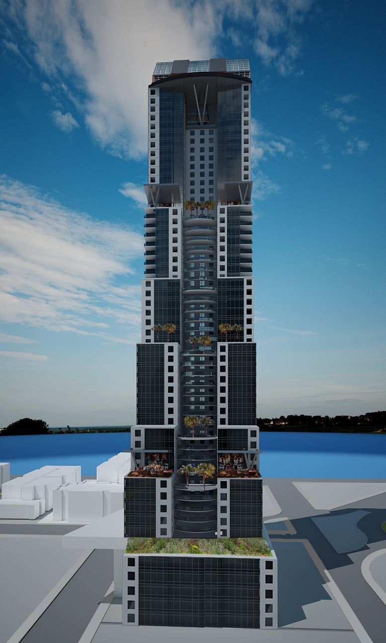 Principal Architect Randal Ehm designed planned to personally develop this 400-room luxury hotel project in San Diego’s Gaslamp District. This 500-foot tower would have been built directly across Park Boulevard from the new Central Library, across K Street from the then-proposed Chargers Stadium. Petco Park is two blocks west of the site. The San Diego Trolley runs along Park Boulevard. The upper floors feature panoramic views of downtown, San Diego Bay, the Pacific Ocean and Tijuana, Mexico. The project was abandoned when the Chargers moved to Los Angeles.